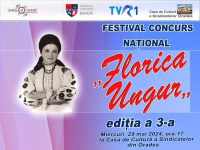 Consililului Județean Bihor prin Centrul de Cultură al Județului Bihor, organizează în data de 29 mai 2024, de la ora 17:00, la Casa de Cultură a Sindicatelor din Oradea, cea de a 3-a ediție a Festivalului-Concurs Național de Muzică Populară "Florica Ungur “.
