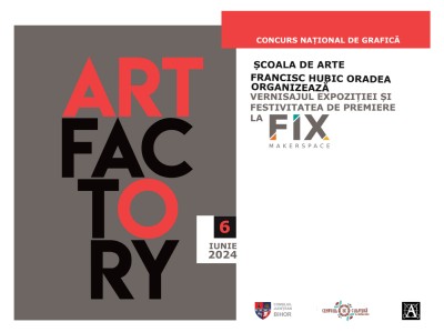 Centrul de Cultură al Județului Bihor, împreună cu Școala de Arte “Francisc Hubic” din Oradea organizează primul vernisaj al concursului național de grafică “ART FACTORY”!