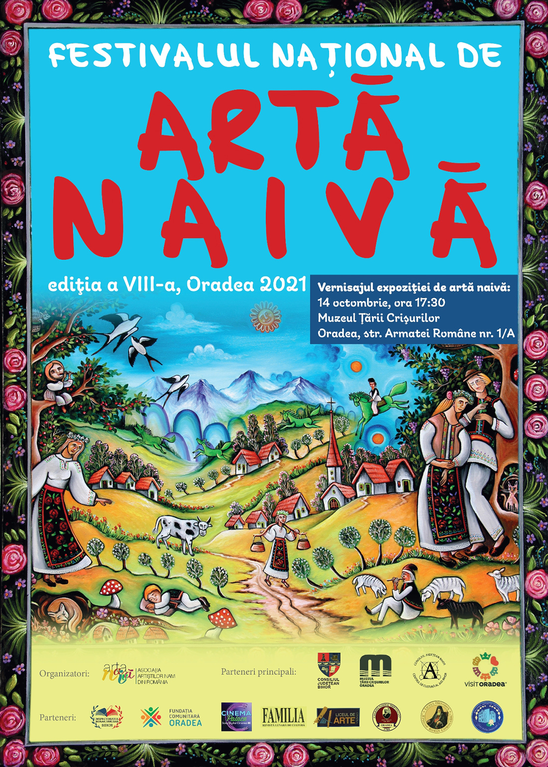 În fiecare an, în octombrie, Oradea este capitala artei naive contemporane româneşti. Vă invităm aşadar cu drag la vernisajul celei de-a VIII-a ediţii a Festivalului Naţional de Artă Naivă, care va avea loc joi 14 octombrie, ora 17:30, la Muzeul Ţării Crişurilor (str. Armatei Române nr. 1/A), fiind precedat de un scurt spectacol de teatru nescris.