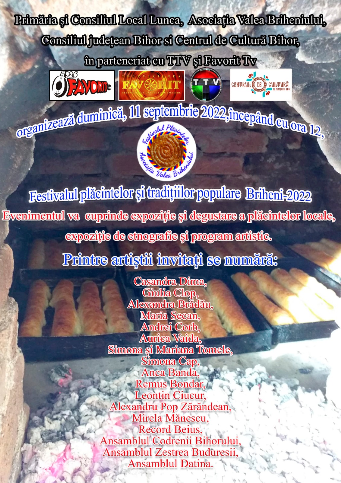 Vă așteptăm cu mare drag la Festivalul plăcintelor de la Briheni, duminică, 11 septembrie 2022 .