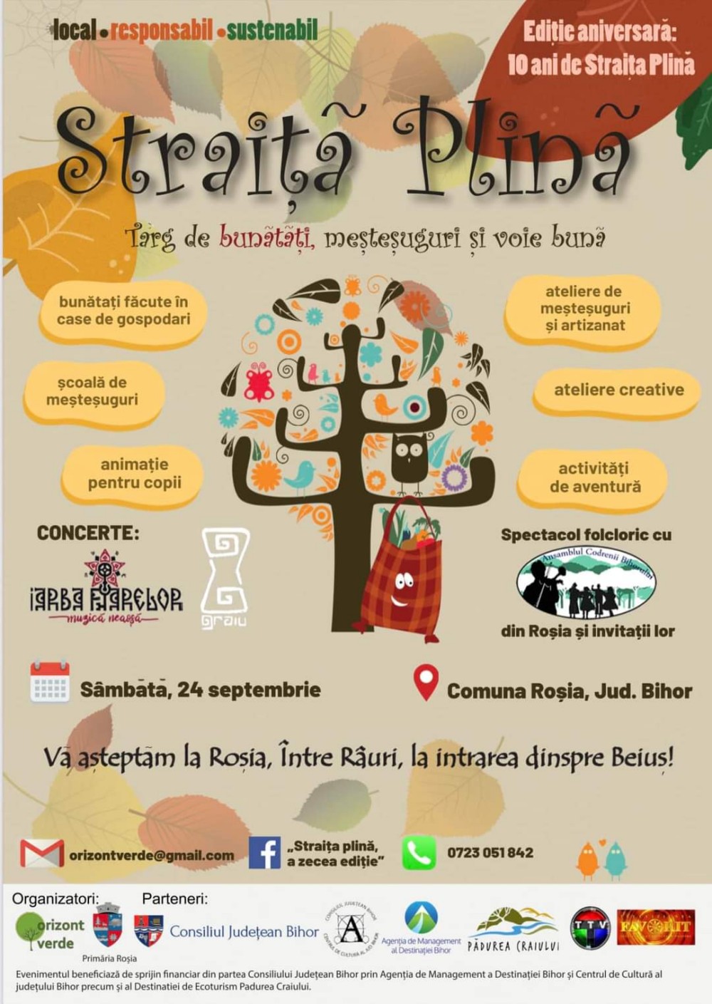 Vă așteptăm la ediția aniversară - 10 ani de Straiță Plină, sâmbătă, 24 septembrie 2022, în comuna Roșia, Între Râuri, la intrarea dinspre Beiuș !