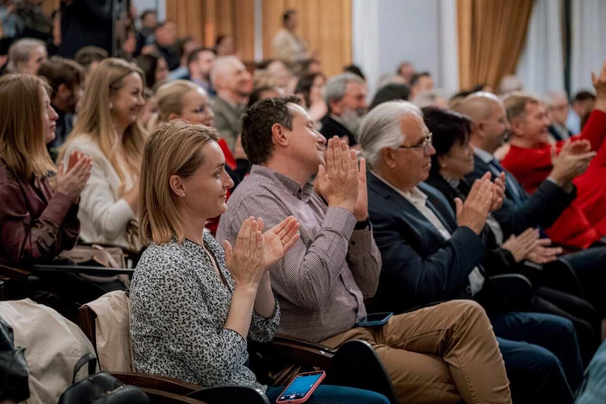 Ropotele de aplauze au răsunat din sala teatrului după fiecare moment, dar finalul spectacolului, când toți artiștii au urcat pe scenă pentru a cânta La mulți ani, a ridicat întreg publicul în picioare, marcând un moment special.