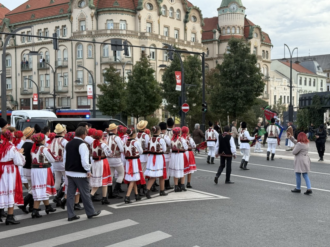 Joi, 2 octombrie 2025, Piața Unirii din Oradea s-a transformat într-o adevărată scenă a tradițiilor, găzduind evenimentul „Higheghe și vin”, organizat de Centrul de Cultură al Județului Bihor și Consiliul Județean Bihor, în parteneriat cu Visit Oradea și Primăria Municipiului Oradea.