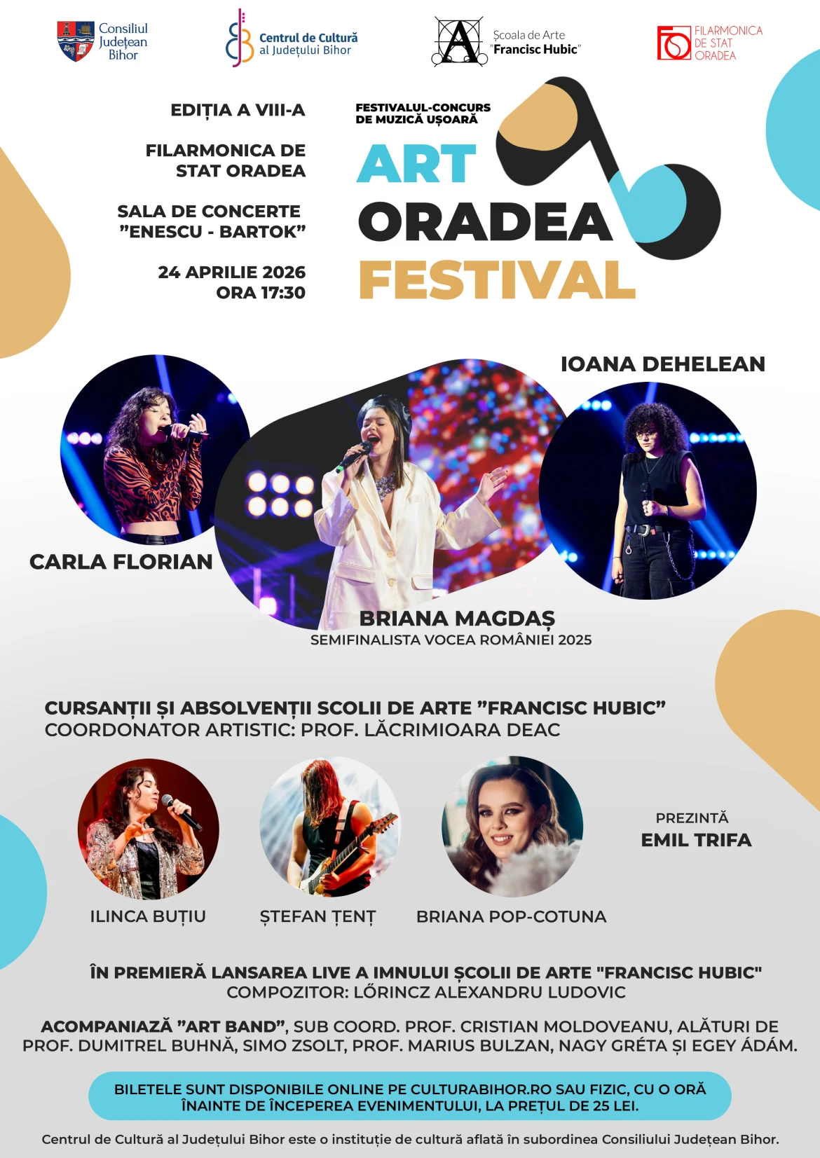 Art Oradea Festival, festivalul-concurs de muzică ușoară, revine cu cea de-a VIII-a ediție, aducând în fața publicului o nouă generație de artiști talentați și o seară plină de emoție, energie și spectacol, în adevăratul sens al cuvântului!